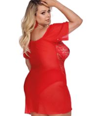 Wir lieben die kleinen, weiten Ärmel, die die Arme nicht einengen, das Mieder aus hypersexy Elatique-Spitze, das Ihre Brüste betont, und die schöne Länge. Geringe Blickdichte, man lässt erahnen, man stellt nichts zur Schau ....