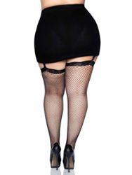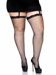 Netzstrümpfe in großer Größe mit einer hübschen Spitzenbordüre verziert.