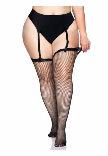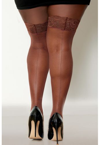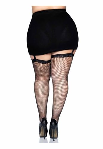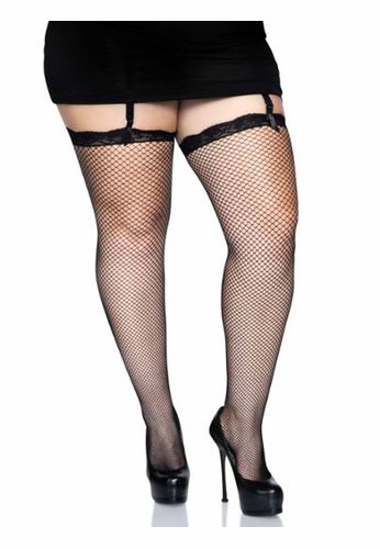 Netzstrümpfe in großer Größe mit einer hübschen Spitzenbordüre verziert.
