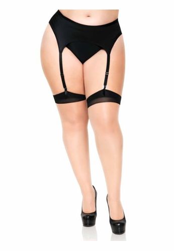 Hautfarbe und schwarze Linie, alles selbstfixierend in großen Größen mit modernen und sexy Strumpfbändern.