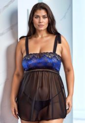 Babydoll Marley Μεγάλο Μέγεθος Γυναίκα Δαντέλα Μπλε Βασιλικό Σιφόν String