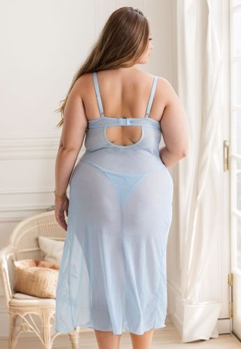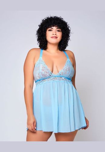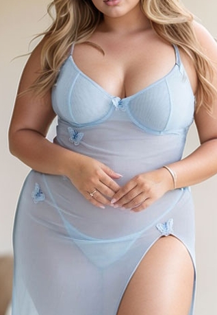 Ρομαντικό γαλάζιο oversized babydoll με κεντήματα πεταλούδας, σαγηνευτικό σκίσιμο και ασορτί στρινγκ. Εγγυημένη απαλότητα και αισθησιασμός!