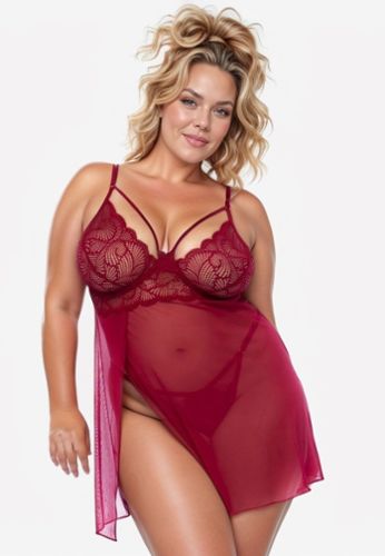Ένα babydoll σε κόκκινο πάθος, άκρως πονηρό: ανάλαφρη μουσελίνα με πουά τόνο-στον-τόνο, μπούστο με μπανέλες και μια σατέν κορδέλα που αφαιρείται εύκολα για την απόλυτη “έκπληξη”. Περιλαμβάνει ανοιχτό string που ταιριάζει.