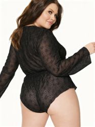 The Chill & Thrill Romper is a sexy and comfortable romper in luxurious velvet flocked mesh for women seeking effortless sensuality. Relaxed fit, full-length sleeves with thumbhole detail, plunging neckline with elastic lace-up, elasticized gathered back waist, cheeky silhouette. Luxurious velvet flocked mesh for elegance. Available in plus sizes and standard sizes.