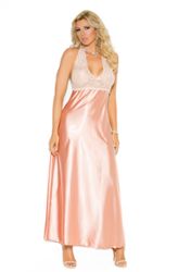 Lace and charmeuse halter neck plus size gown.