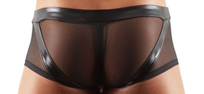 A tight, ultra-sexy transparent lace boxer that teases without giving everything away. The woven elastic waistband feels comfortable, and the slim button placket at the front can be opened all the way down to the crotch.