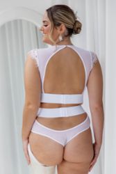 On adore surtout les deux larges élastiques : ils se positionnent dans le dos et sur les reins, marquent la taille et apportent un vrai soutien à la poitrine. Et si vous voulez pousser le look plus loin, les jarretières amovibles permettent de le porter avec des bas, ou tout simplement en ensemble “nude chic”.