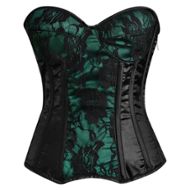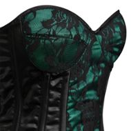 Corpete overbust tamanho grande cetim verde & renda, zíper