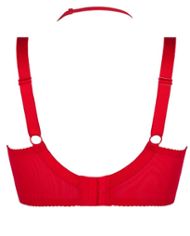 superbly crafted 1/3 cups, covered in pleated muslin, offer excellent bust support. They are topped with a semi-transparent red veil.