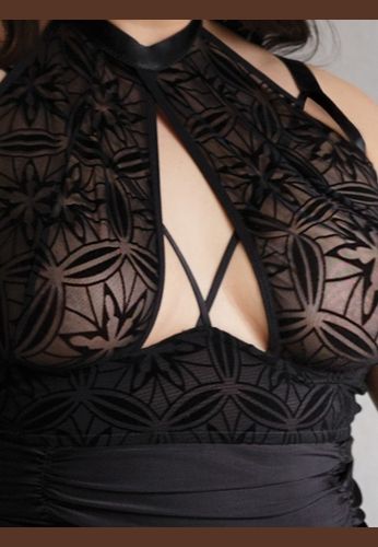 This baroque bodysuit combines transparency and opacity in a refined play of seduction.