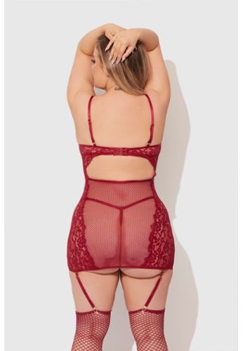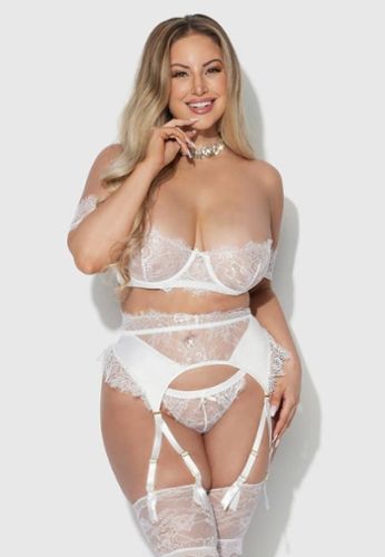 Entra en un mundo de sensual romanticismo con el conjunto Angel. Un corpiño de satén y delicado encaje, un escultural liguero y un tanga a juego para un look divino.
