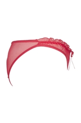 Para completar el conjunto del mismo nombre, ¿qué mejor que el tanga Sevilla, con sus románticos volantes que se combinan juguetonamente con la audacia de sus aberturas?