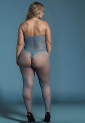 Bodystocking grande taille bleu ouvert entrejambe motifs floraux dentelle