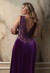 Chemise de Nuit Magie de Minuit grande taille : Velours Violet Foncé, Dentelle, Coupe Empire
