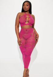 Deux pièces ajourées, à grandes broderies, dans un rose vif magnifique.