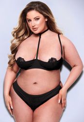 Conçu en noir nuit classique, le soutien-gorge quart de bonnet est rehaussé de dentelle florale transparente et d'une bretelle réglable (pas besoin d'ajouter un collier supplémentaire !), tandis que le string assorti ressemble à une culotte traditionnelle à l'avant, avec une double lanière minimaliste à l'arrière !