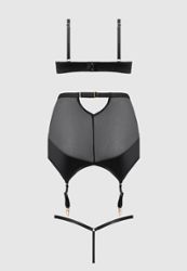 - Ensemble : Soutien-gorge + jupe porte-jarretelles + string