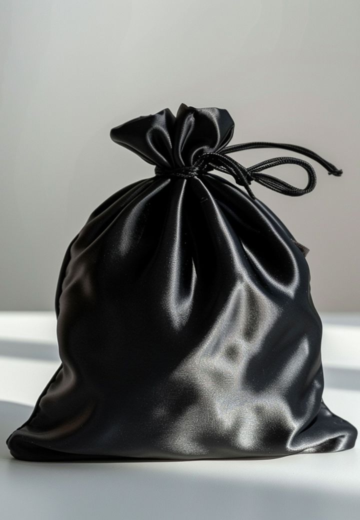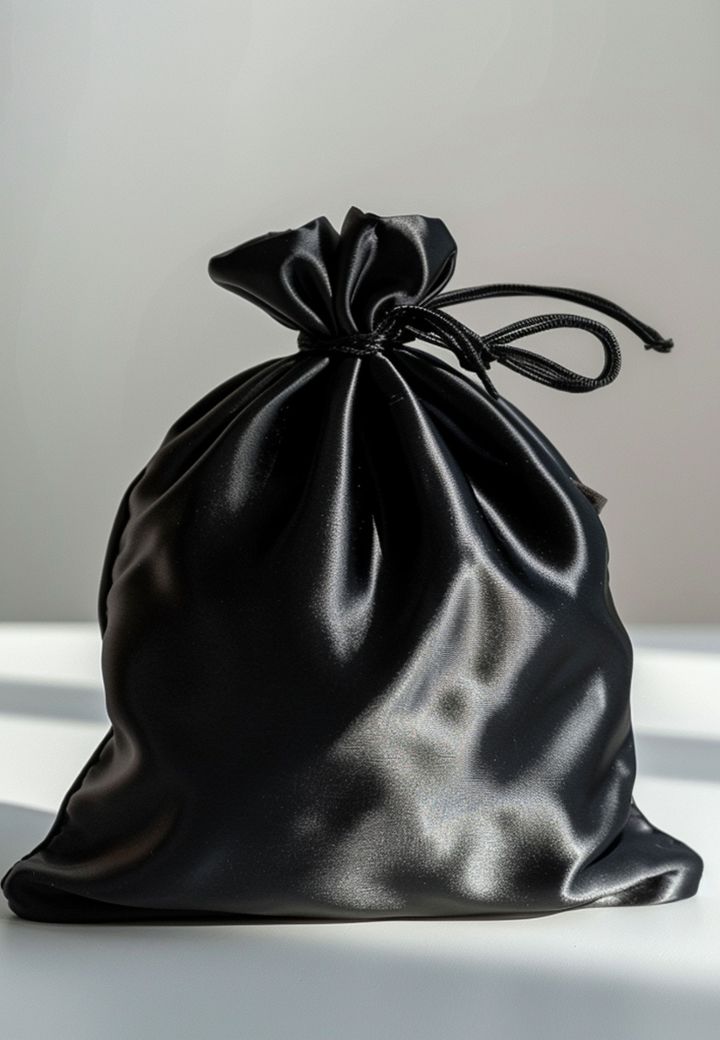 Une création audacieuse qui associe une délicate résille nude et un satin noir sophistiqué dans un style résolument moderne.