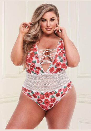 Motifs floraux, coupe ouverte sur le haut des fesses, fraicheur et volupté pour cet ensemble grande taille.