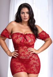 Nuisette grande taille Bohème Dentelle Rouge
