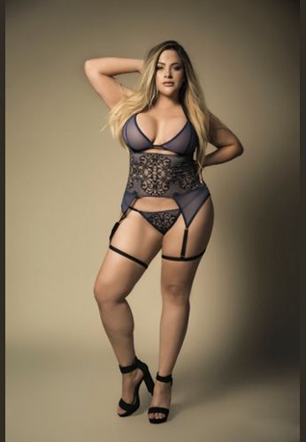 Ensemble bleu grande taille avec broderie et serre-taille à jarretelles
