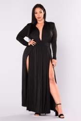 Superbement coupée, cette longue robe grande taille a deux ouvertures sur le coté pour un look élégant et glamour.