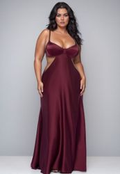 Confectionnée dans un satin luxueux qui épouse parfaitement toutes les morphologies, elle révèle votre élégance naturelle grâce à ses découpes sophistiquées et son drapé dramatique jusqu'au sol.