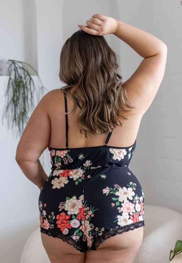 Superbe body grande taille à motifs fleuris, très agréable à porter.