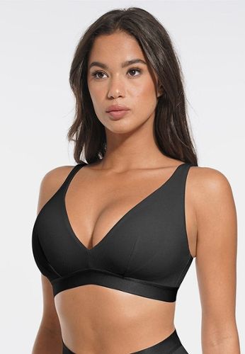 Découvrez ce soutien-gorge noir sans armatures qui sublime les courbes généreuses avec une élégance intemporelle.
