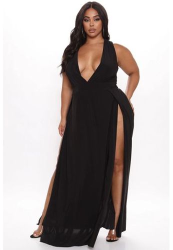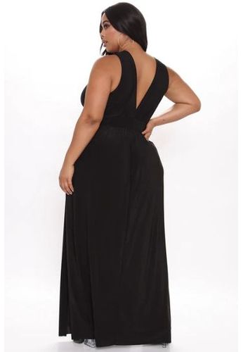 Mooie jurk van imitatieleer met kanten kraag, groote maat.