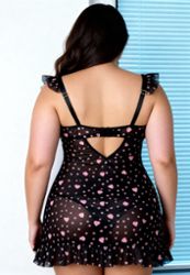 Babydoll taglie forti nero tulle cuori rosa volant fiocchetti
