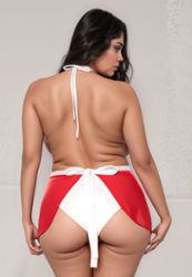 Questo travestimento da infermiera birichina vi farà venire voglia di ammalarvi subito. Il grembiule in pelle rossa e bianca con mutandine integrate a taglio alto crea un look originale e ultra-sexy.