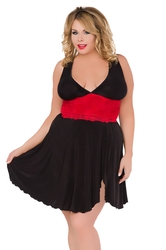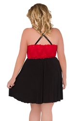 Deze Isabeau babydoll is volledig ondoorzichtig, gemaakt van een mooie kwaliteit stretchstof, met een rode elastische kanten band en een kriskras rugpand.