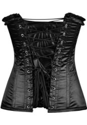 Overbust korset grote maat satijn zwart, haaksluiting voor