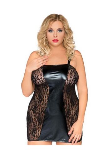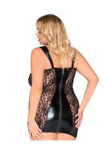 Prachtige jurk van groote maat in prachtig kant en stretch imitatieleer.