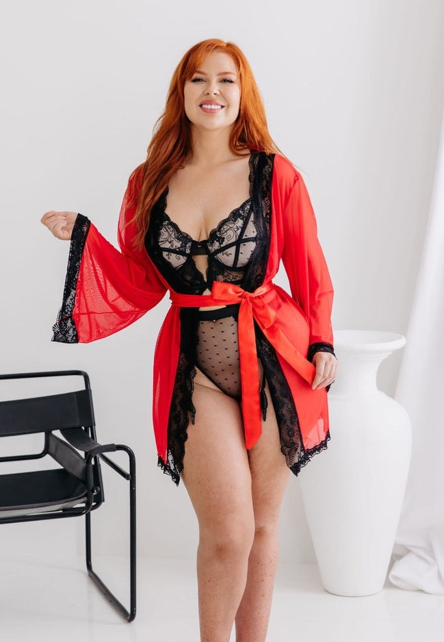 Ga helemaal los met deze negligé van grote maat, of waarom niet? Draag hem met de bijpassende string.