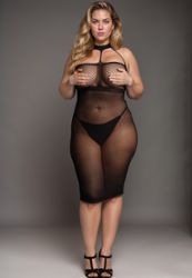 Um look intemporal, tão glamoroso como poderia desejar, um babydoll plus size em malha de alta qualidade com bodystocking.