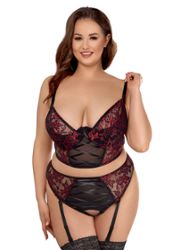 Very pretty plus-size set, open at the crotch and with a pretty bra-raising effect.