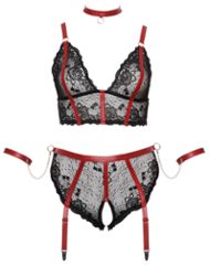 Excecional e ultra-sensual, é assim que se descreve este conjunto de tamanho grande com abertura nas virilhas. Oferecemos-lhe as meias no seu tamanho.