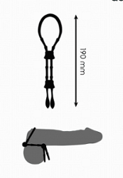 Aplique lubrificante à base de água para facilitar o uso. Ajuste o cordão ao redor do pênis até atingir a pressão desejada. Não use por mais de 30 minutos seguidos e remova imediatamente em caso de desconforto.