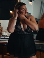 Bela qualidade, véu duplo e seios abertos para este babydoll de tamanho grande.
